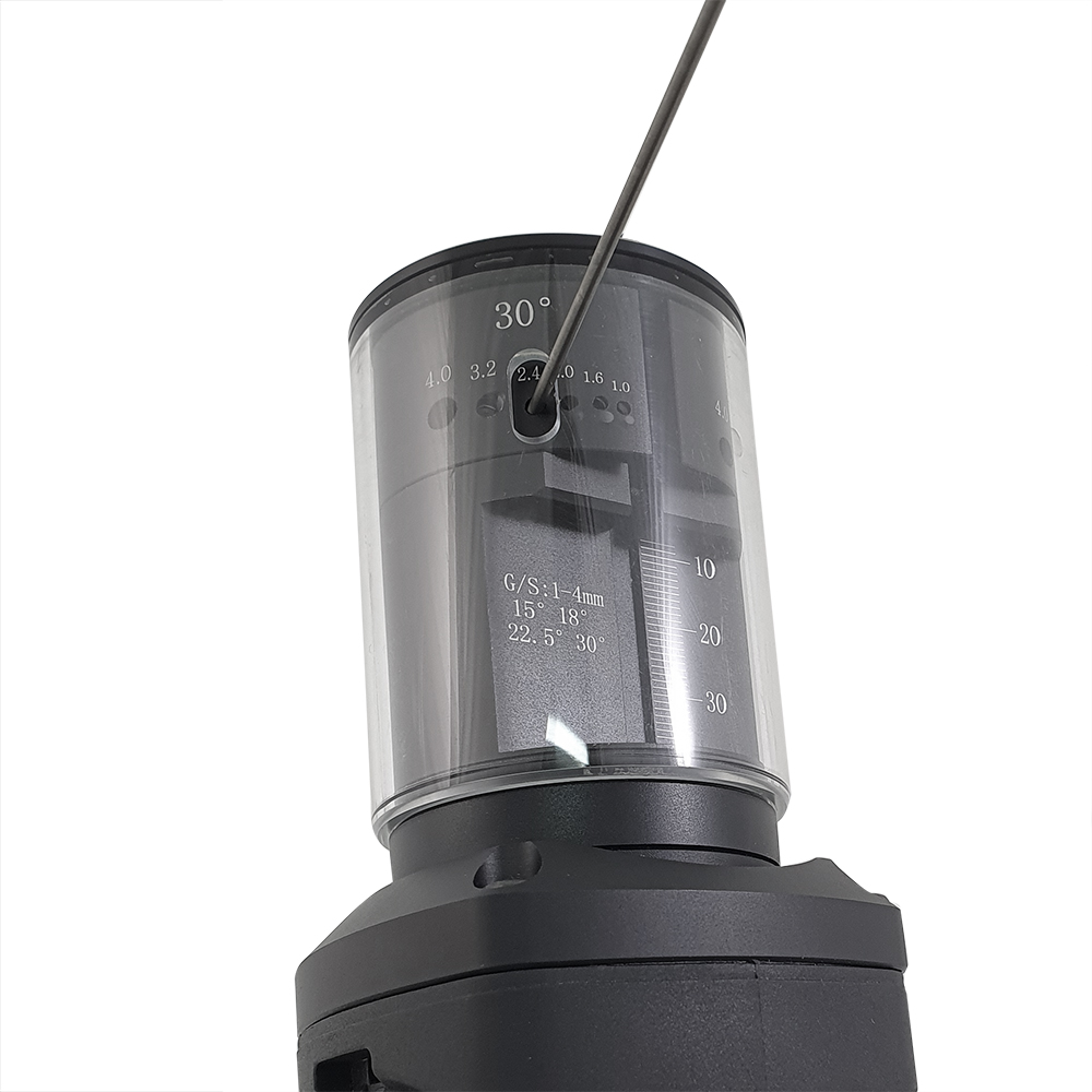 • Narzędzie umożliwia ustawienie i stałe utrzymanie kąta stożka elektrody, co bezpośrednio przekłada się na kontrolę skupienia i stabilności łuku oraz głębokości penetracji. Idealna do spawania wymagającego wąskiego lub szerokiego profilu przetopu.