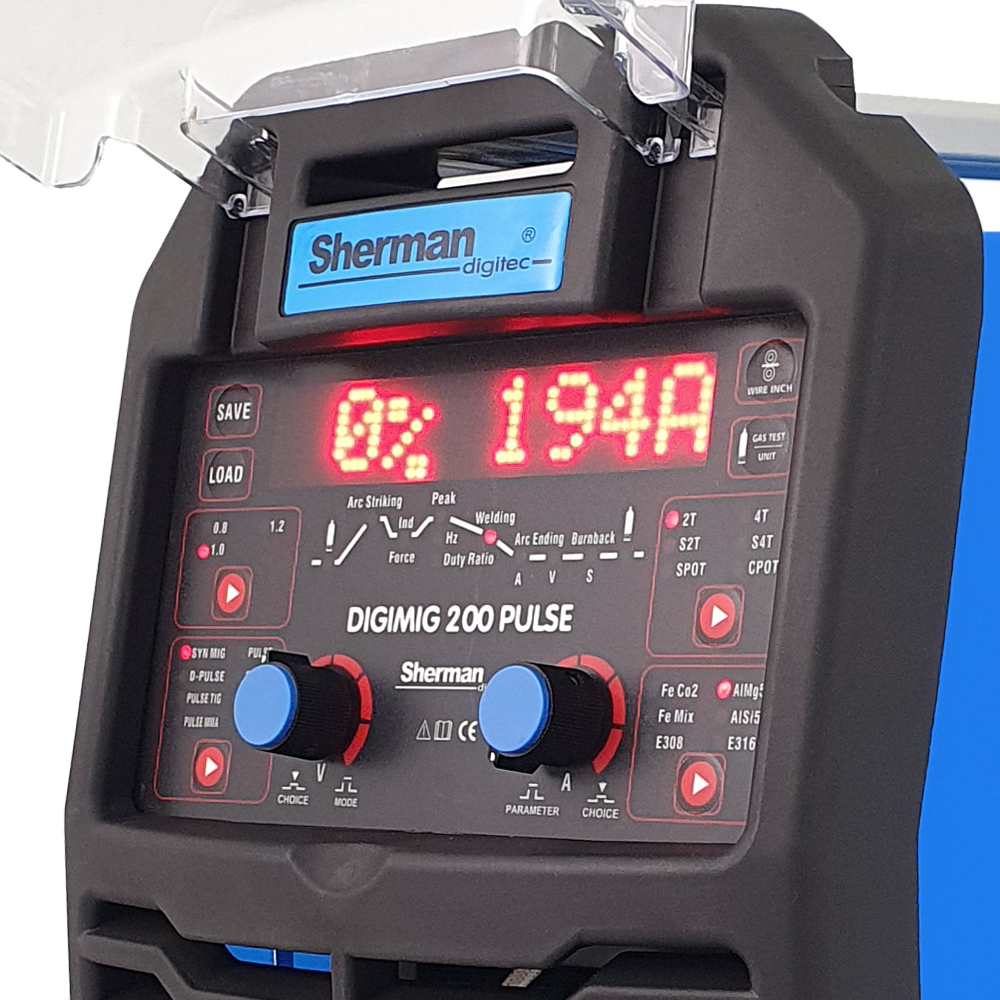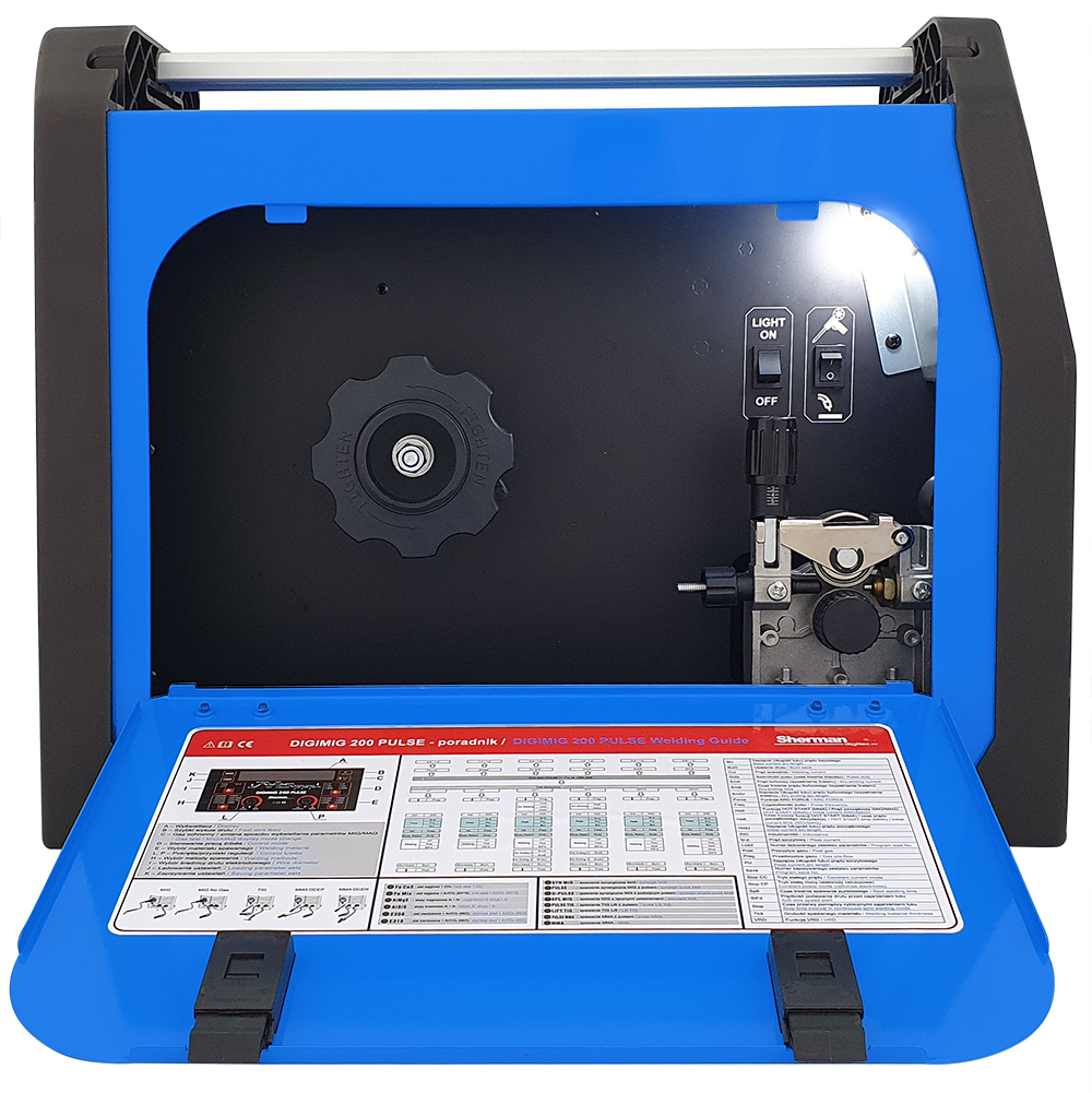 DIGIMIG 200 Pulse umożliwia spawanie metodą TIG z pulsacją DC wraz z regulacją charakterystyki pulsu. Spawarka pozwala na wykorzystanie kilku trybów pracy łącznie z opcją spawania punktowego. Urządzenie posiada pamięć ostatniego ustawienia, czyli po jego wyłączeniu i ponownym załączeniu przywracane są ostatnio ustawione parametry. Możliwe jest również zapamiętanie 35 zestawów ustawień z łatwym dostępem do trybu zapisu/odtworzenia programu. Urządzenie wyposażone jest w oświetlenie komory podajnika, co znacznie ułatwia i przyspiesza zakładanie oraz wymianę szpuli z drutem, szczególnie w słabo oświetlonych miejscach pracy. Na wewnętrznej stronie pokrywy komory szpuli znajduje się skrócony poradnik dla spawacza, ułatwiający bieżącą obsługę urządzenia ze szczegółowym opisem dostępu do regulowanych parametrów pracy.