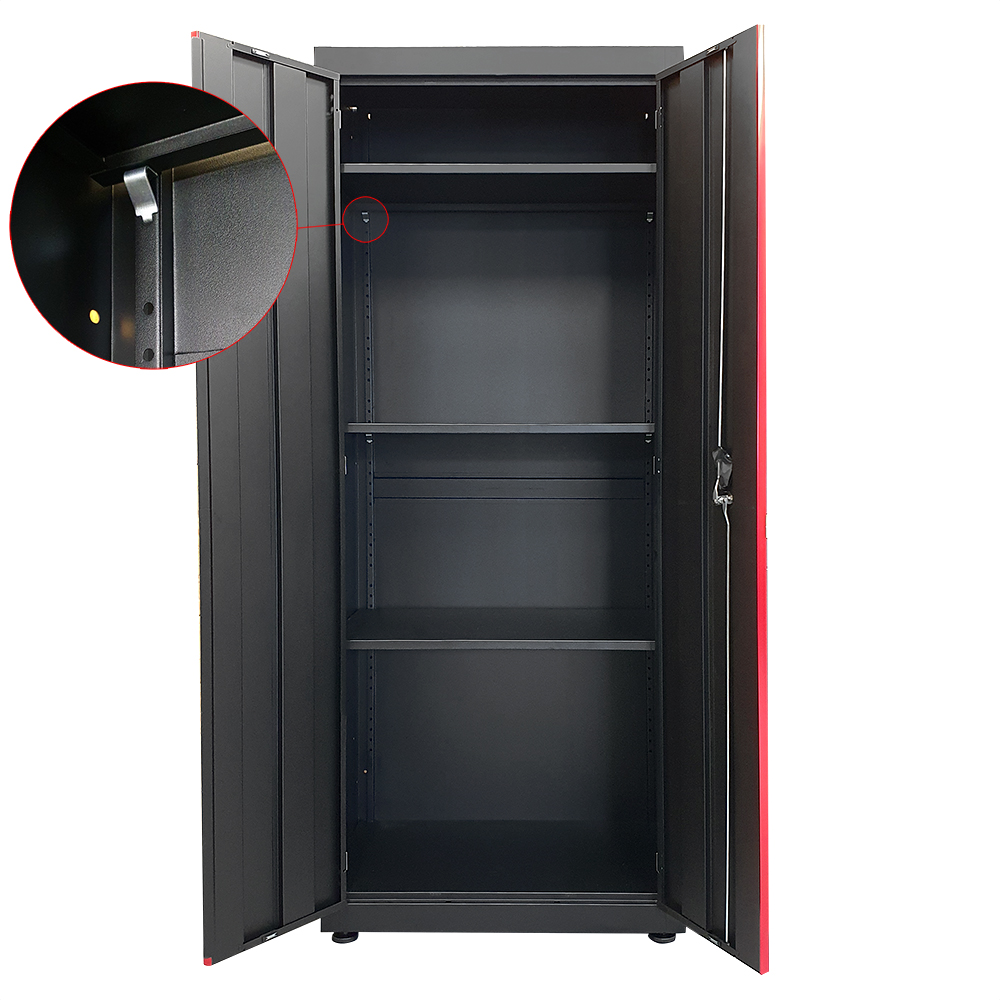 - Typ szafek: szafa z półkami, szafka z szufladami, szafka dolna z półką, wózek z szufladami na kołach, dwie wiszące półki, półka z uchwytami na elektronarzędzia